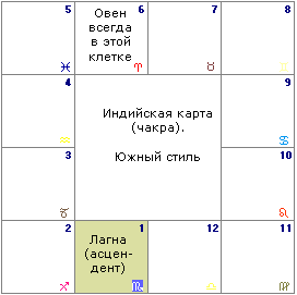 Графическое представление индийского гороскопа хоть и называется чакрой (колесом), но имеет